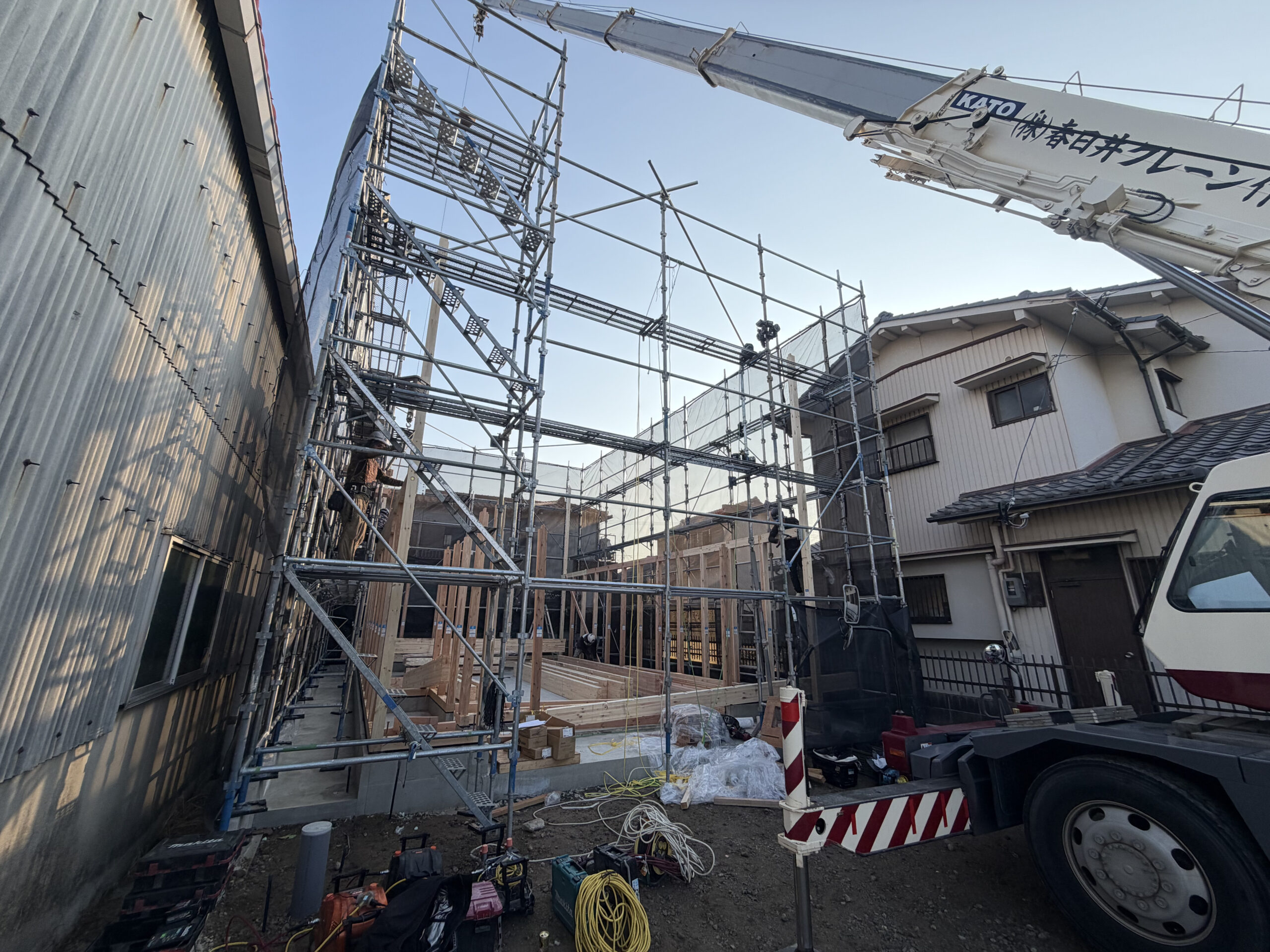 お昼頃には建方が終了し帰っていきました。颯爽と来て颯爽と帰る!かっこいいですね!
