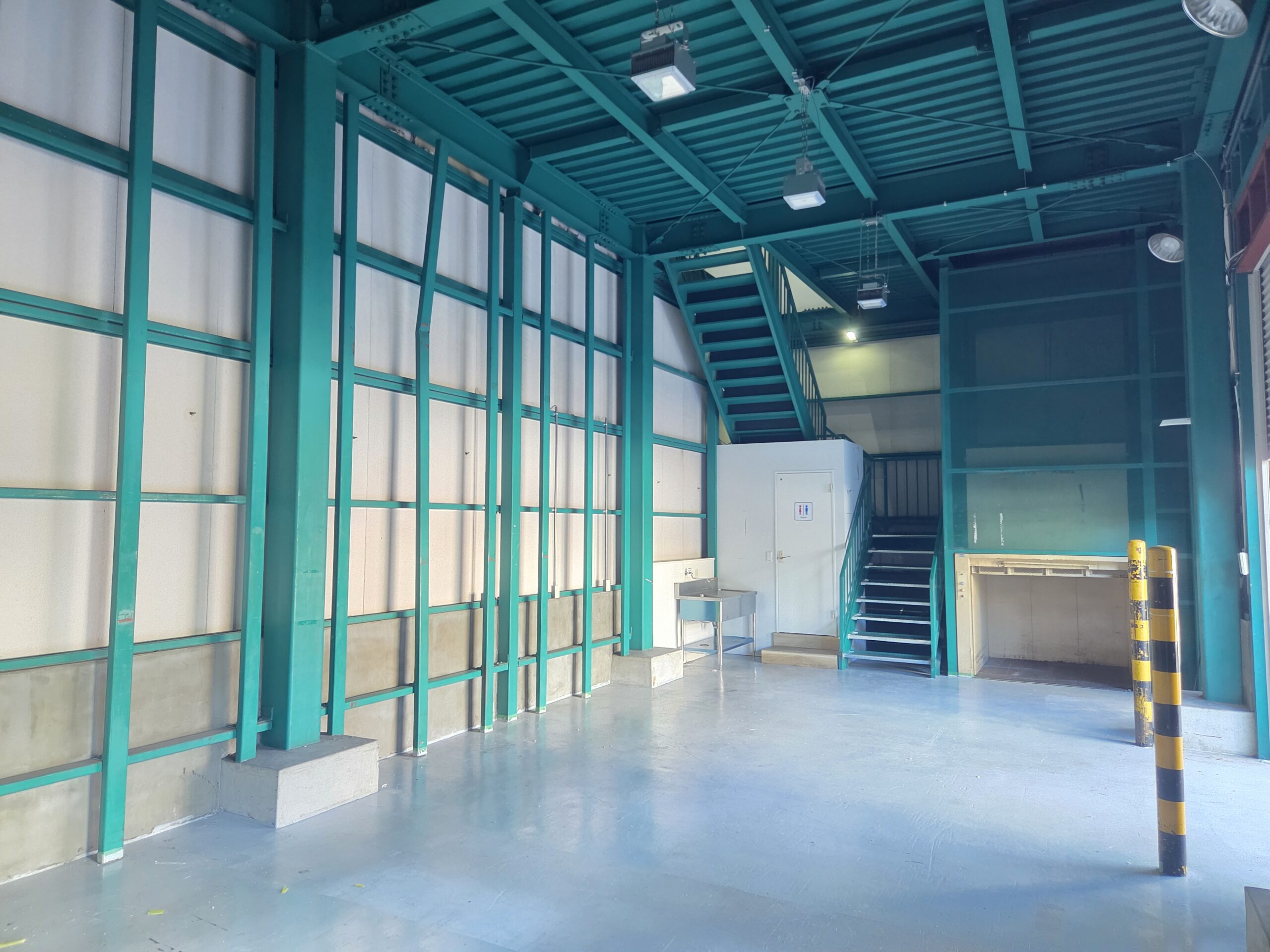 シャッターの開口部も広く、スムーズな荷捌きが可能です。室内は広々としており解放感があります。